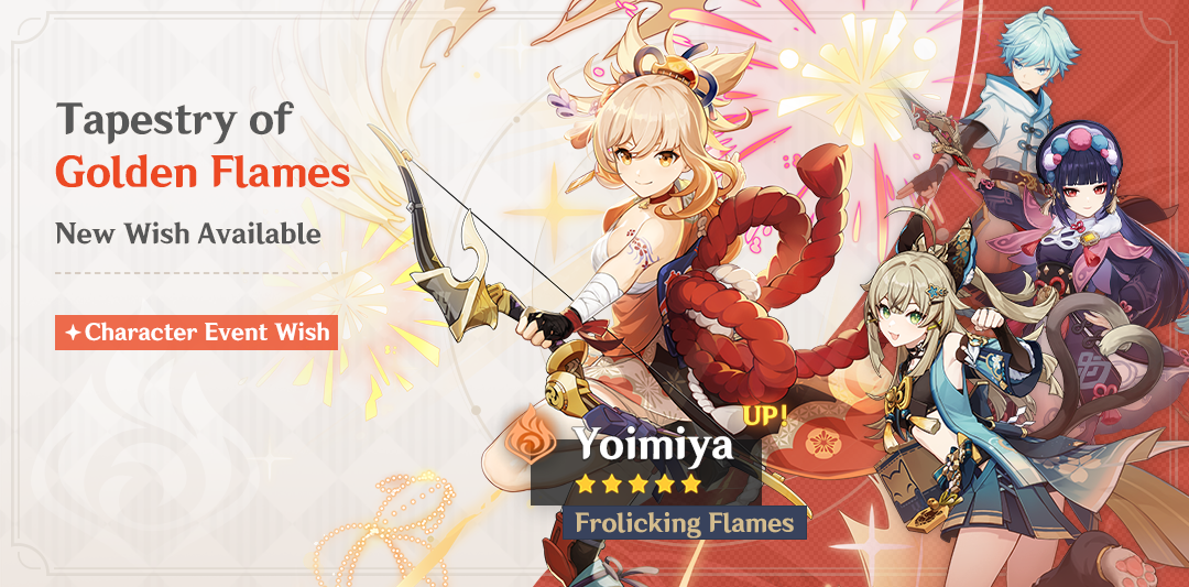 Event Wish Tapestry of Golden Flames - Boosted Drop Rate for Frolicking Flames Yoimiya (Pyro)!