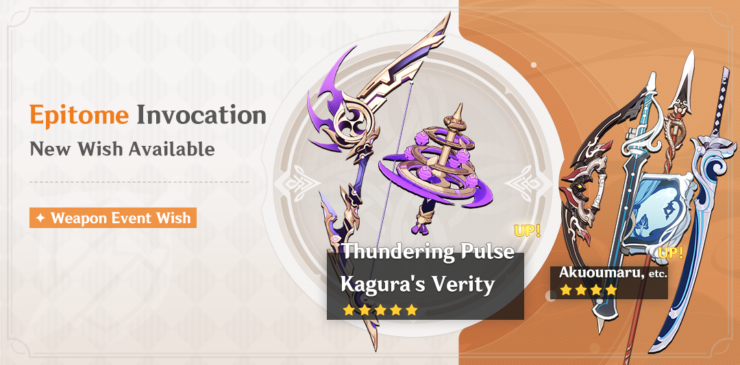 Event Wish Epitome Invocation - Boosted Drop Rates for Thundering Pulse (Bow) and Kagura's Verity (Catalyst)!