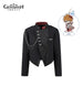 The coat replicates the character's signature diagonal lines and features contrasting printed fabric with a split hem, creating a distinctive silhouette.