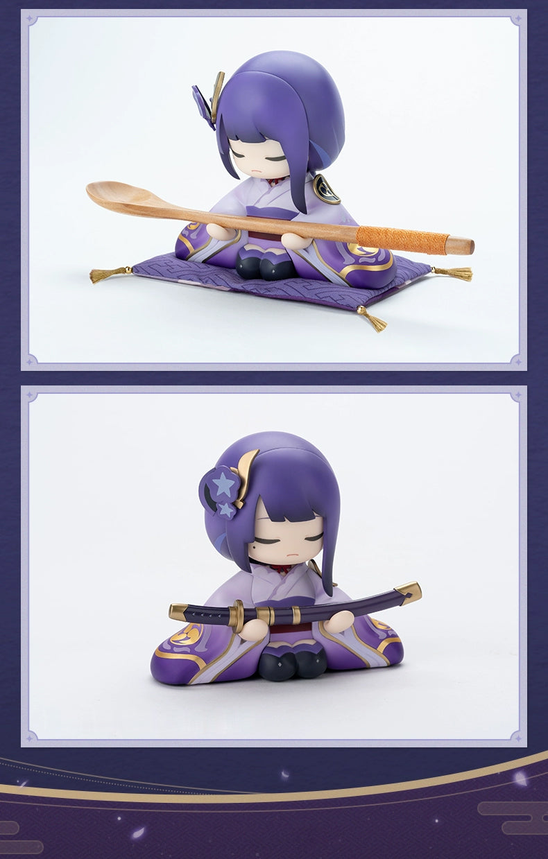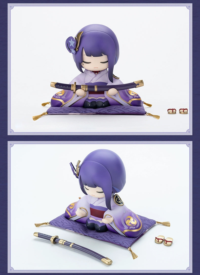 The Statue of Her Excellency, the Almighty Narukami Ogosho, God of Thunder, is just too cute! The serious expression combined with the adorable look creates a perfect contrast. Accompanied by a finely crafted little cushion and charming wooden clogs, it showcases the grandeur of a general. It's ideal for placing on a desk or beside your bed, guarding your sweet dreams as a traveler!