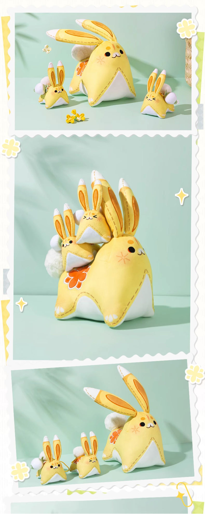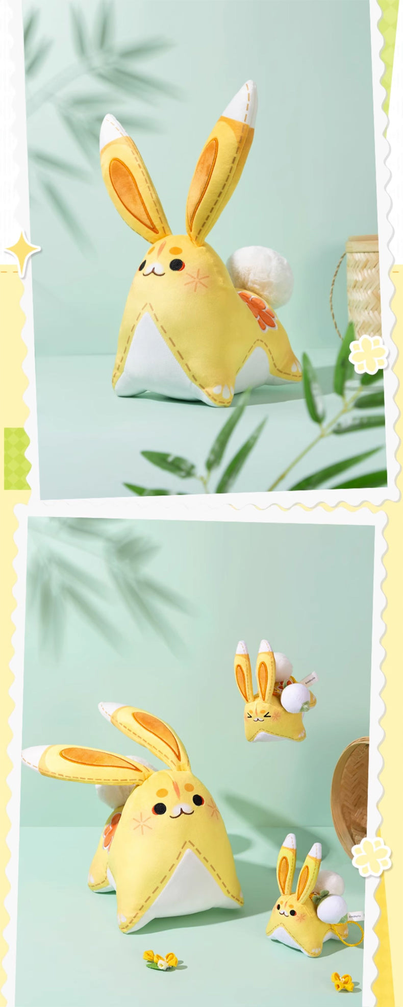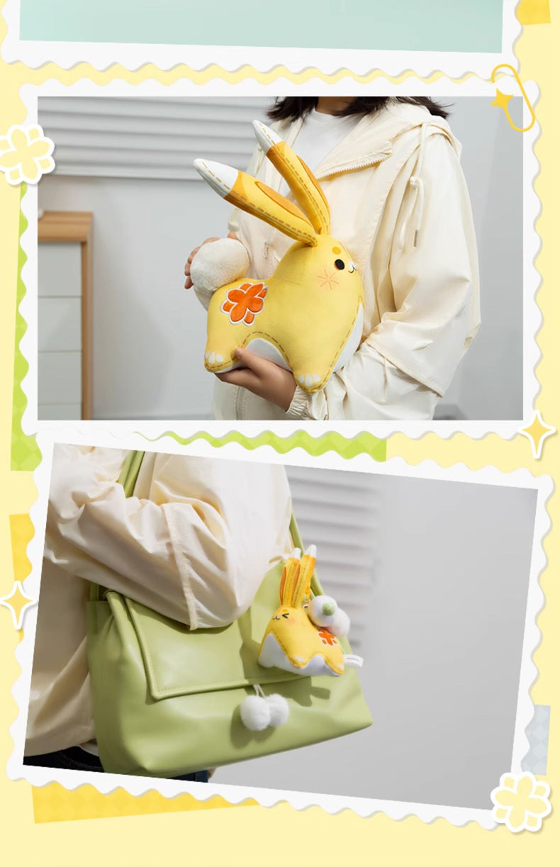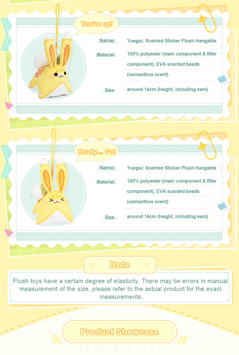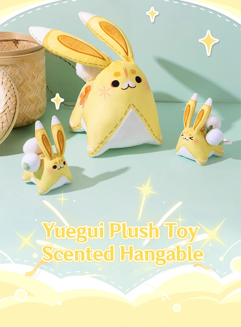 Yuegui, you're up! When Yaoyao uses her elemental skill/burst, she summons a bunny named "Yuegui." Now, this adorable bunny is available as a large plush toy or hanging ornament. It's incredibly soft and carries a subtle fragrance, a blend of osmanthus and grassy scents. The fragrance lasts for 8 months to a year, making it an excellent choice for purchase.